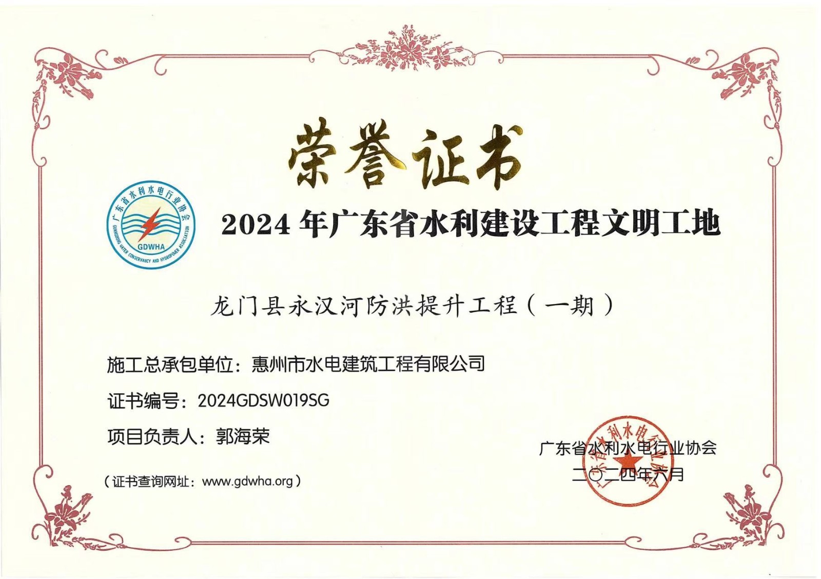 惠州市水電建筑工程有限公司成立于一九六四年四月,隸屬惠州市水務(wù)集團有限公司,是一家國有綜合性施工企業(yè),主營水利水電工程、房屋建筑、市政工程等施工業(yè)務(wù)。公司擁有水利水電工程施工總承包一級、建筑工程施工總承包一級、市政公用工程施工總承包一級、公路工程施工總承包三級,公路路基、路面及建筑裝修裝飾專業(yè)承包二級,環(huán)保工程、機電安裝、河湖整治、輸變電工程專業(yè)承包三級等經(jīng)營資質(zhì)……