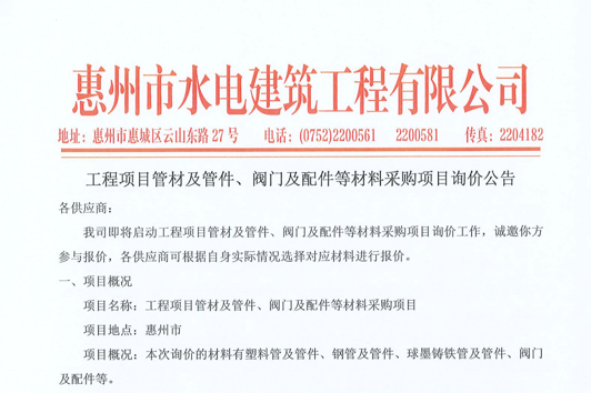 惠州新材料產(chǎn)業(yè)園配套區(qū)基礎(chǔ)設(shè)施建設(shè)(二期)項目施工井蓋采購項目詢價公告……