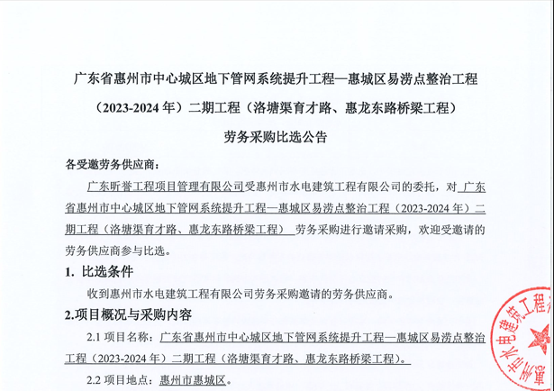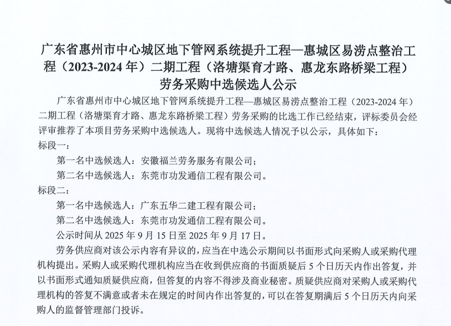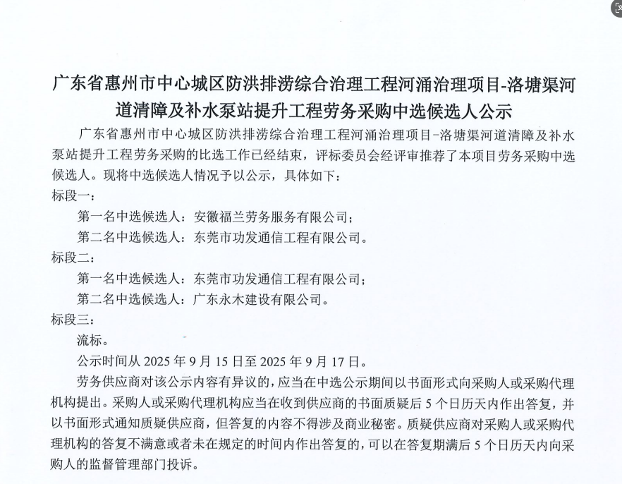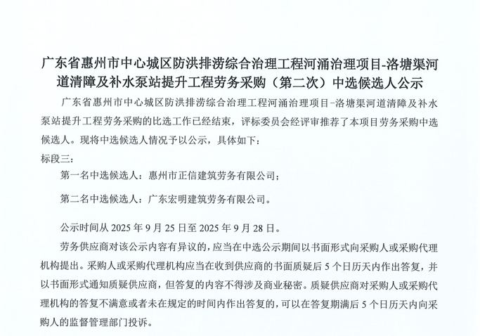 惠州市水電建筑工程有限公司勞務(wù)供應(yīng)商庫擴庫評審結(jié)果公示……